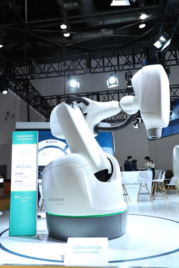 與此同時(shí),安科銳旗下的CyberKnife®射波刀放射外科手術(shù)機(jī)器人系統(tǒng)也在本屆CHINA MED上進(jìn)行了展示。作為目前世界上唯一的一款智能機(jī)器人放射治療設(shè)備,CyberKnife®射波刀適用于全身以及顱內(nèi)的放射外科治療,可以實(shí)時(shí)在放療過程中對腫瘤靶區(qū)進(jìn)行如影隨形的跟蹤和修正,治療精度達(dá)到亞毫米級,在進(jìn)行高效治療的同時(shí),也能保護(hù)好正常的組織,為腫瘤患者提供全面、快捷、高效的精準(zhǔn)腫瘤放射外科/放療解決方案。