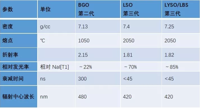 (1)晶體:從理論上講,表1所列幾種晶體均可以用于PET探測器,但是從臨床經(jīng)驗來看,目前用于PET探測器的晶體主要有BGO、LYSO、LSO和LBS等四種。其中LYSO、LSO以及LBS這類晶體由于含有金屬镥(Lutetium),因此余輝時間明顯減少。一般認(rèn)為晶體余輝時間小于80ns(納秒)就可以實現(xiàn)飛行時間(Time of Flight, TOF)技術(shù)。而BGO等晶體余輝時間太長,不能實現(xiàn)TOF技術(shù),即將淘汰(1,2)。當(dāng)然,含镥晶體(LSO、LYSO)也有其不足,就是含有自身本底放射性,有效原子序數(shù)偏小,會導(dǎo)致射線探測效率降低。所以,一般講LYSO、LSO和LBS這類晶體在PET探測器中其最佳長度為20mm左右(3)。所以,如果選擇LYSO、LSO或LBS這一類晶體,那么就必須具有TOF技術(shù)來彌補(bǔ)或克服其探測效率低的固有缺陷。