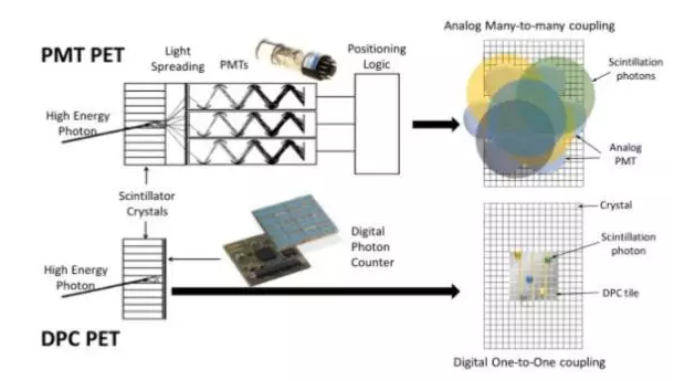 C、數(shù)字光子計數(shù)DPC(Digital photon counting)。鑒于上述SiPM的一些缺點,DPC應(yīng)運而生。