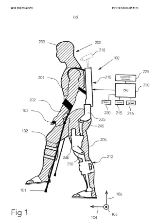2010年,伯克利仿生研究所研制出的一種由電池提供動力的機械骨骼系統(tǒng)“eLEGS“。這是世界上第一款不使用繩或鏈達到自然行走目標(biāo)的外骨骼,使用者通過手臂姿勢控制,向前移動右拐杖,則左腿隨之向前移動,幫助截癱患者擺脫輪椅以自然步態(tài)行走。