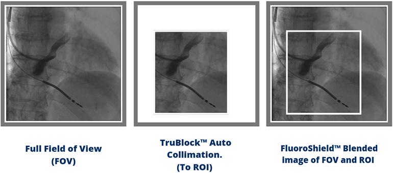在進行介入程序期間,F(xiàn)luoroShield會利用熒光或電影(跳動的心臟的X射線短片)成像自動將輻射束對準目標區(qū)域。這要歸功于歐米茄的TruBlock自動準直技術(shù)。