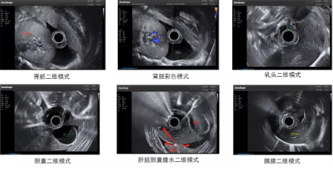 在系統(tǒng)層面,EG-UR5可搭配開立醫(yī)療全高清電子內(nèi)鏡系統(tǒng)HD-550和的超聲系統(tǒng)S60,為上消化道病變性質(zhì)診斷提供優(yōu)異的光學(xué)圖像和超聲圖像(圖3)。HD-550內(nèi)鏡系統(tǒng)搭載了國產(chǎn)首臺(tái)雙波長LED復(fù)合的內(nèi)窺鏡冷光源VLS-50T,不僅能夠提供高亮度白光觀察,還支持聚譜成像(SFI)和光電復(fù)合染色成像(VIST)兩種特殊光觀察模式。S60超聲系統(tǒng)除了支持常規(guī)超聲掃查模式,還提供彈性成像、造影成像等成像模式。
