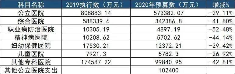 通過(guò)數(shù)據(jù)顯示,不同類(lèi)型的公立醫(yī)院財(cái)政支出下降幅度略有不同,其中綜合公立醫(yī)院2020年的預(yù)算數(shù)同比去年下降了41.8%。