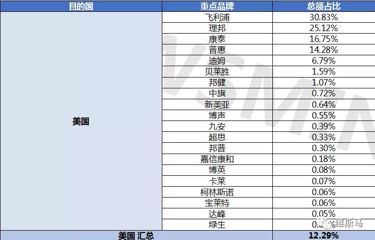 美國(guó)市場(chǎng)為中國(guó)心電圖出口最大的市場(chǎng),共計(jì)28家中國(guó)出口商,占全年心電圖出口12.29%的份額。其中飛利浦在美國(guó)市場(chǎng)占有率高達(dá)30.83%,領(lǐng)先于其他出口商。