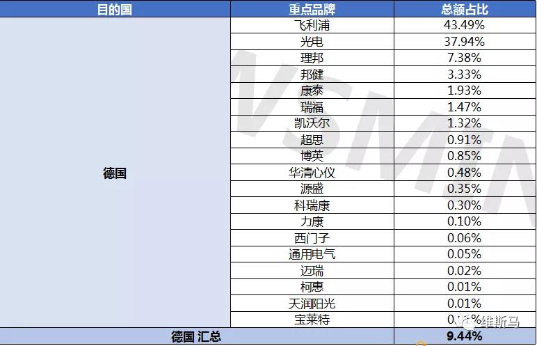 德國(guó)市場(chǎng)為中國(guó)心電圖出口第二大市場(chǎng),共計(jì)19家出口商,占全年心電圖出口9.44%的份額。其中飛利浦在德國(guó)市場(chǎng)占有率高達(dá)43.49%。