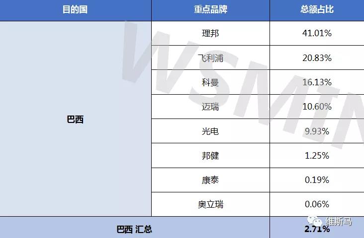 巴西市場(chǎng)為中國(guó)心電圖出口第八大市場(chǎng),共計(jì)8家出口商,占全年心電圖出口2.71%的份額。其中理邦在巴西市場(chǎng)的占有率為41.01%。
