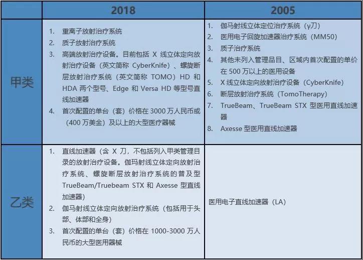 附:放射治療設(shè)備2018版目錄與2005版目錄對比