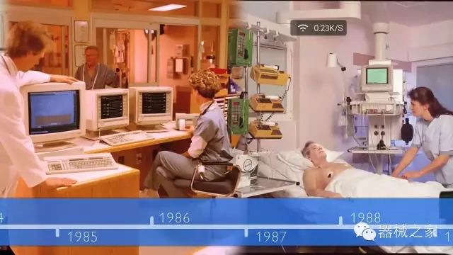 HP (后被飛利浦公司收購(gòu))病人監(jiān)護(hù)儀始于1973年,那時(shí)的中央站還有攝像頭能觀察到病人情況,好先進(jìn)啊