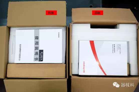 在儀器包裝上,科曼NC12和IPM12都是采用珍珠棉進(jìn)行包裝,但科曼NC12采用360°無死角的全包裹方式,雖然看起來臃腫,但是更能保證儀器在運(yùn)輸途中的安全;邁瑞IPM12采用半包裹的方式,看起來簡潔清爽,但存在一定的安全隱患。
