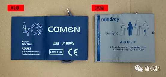 兩家都采用防水面料和薄膜氣囊。科曼顏色更深,不知道是不是因為深色耐臟。袖套看起來要厚點(diǎn),不過摸起來也一樣柔軟。邁瑞是不經(jīng)臟的白色,拿起來會發(fā)現(xiàn)更柔軟?;蛟S是深色顯得明亮,對比之下,總覺得邁瑞的袖套看起來舊舊的。