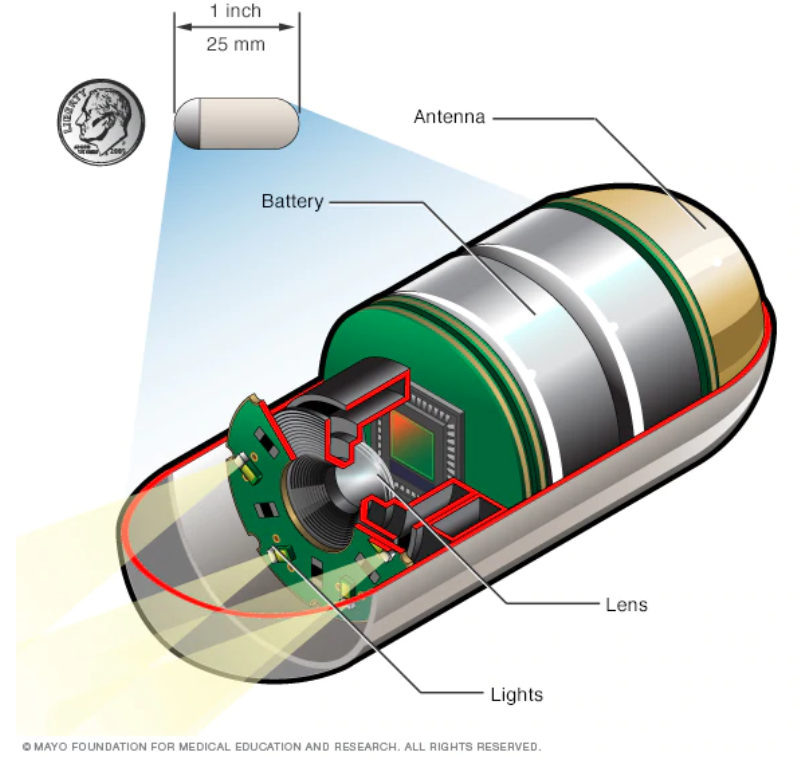 1994年,在世界腸胃病學(xué)大會上,Paul Swain在演講中提出了無線內(nèi)窺鏡的想法。1996年,他的團(tuán)隊將一個大的原型設(shè)備、相機(jī)、微波傳輸器、光源和一個電池塞進(jìn)了豬的胃,進(jìn)行測試。實(shí)驗(yàn)表明,這套裝置能以每秒30幀的速度,持續(xù)20分鐘獲取圖像。
