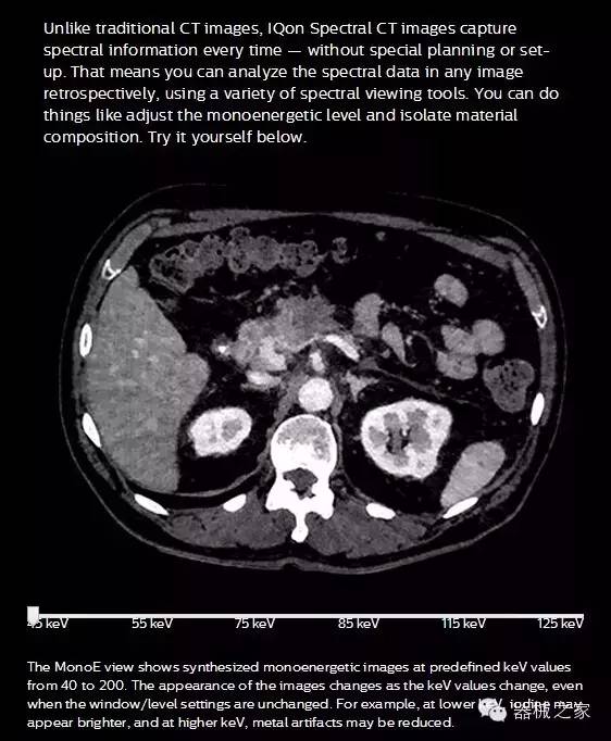 IQon光譜CT能夠按照需求提供光譜量化和工具,并能通過簡單工作流程、在低劑量下對(duì)結(jié)構(gòu)進(jìn)行定性分析