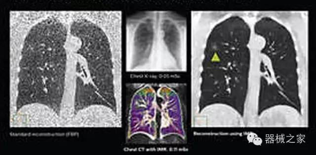 透過數(shù)字化影真芯片DAS系統(tǒng)、球面微平板探測器技術(shù)和濾線柵技術(shù)等硬件技術(shù),整體提高探測器成像的能力,奠定低劑量條件下高清成像的基礎(chǔ);